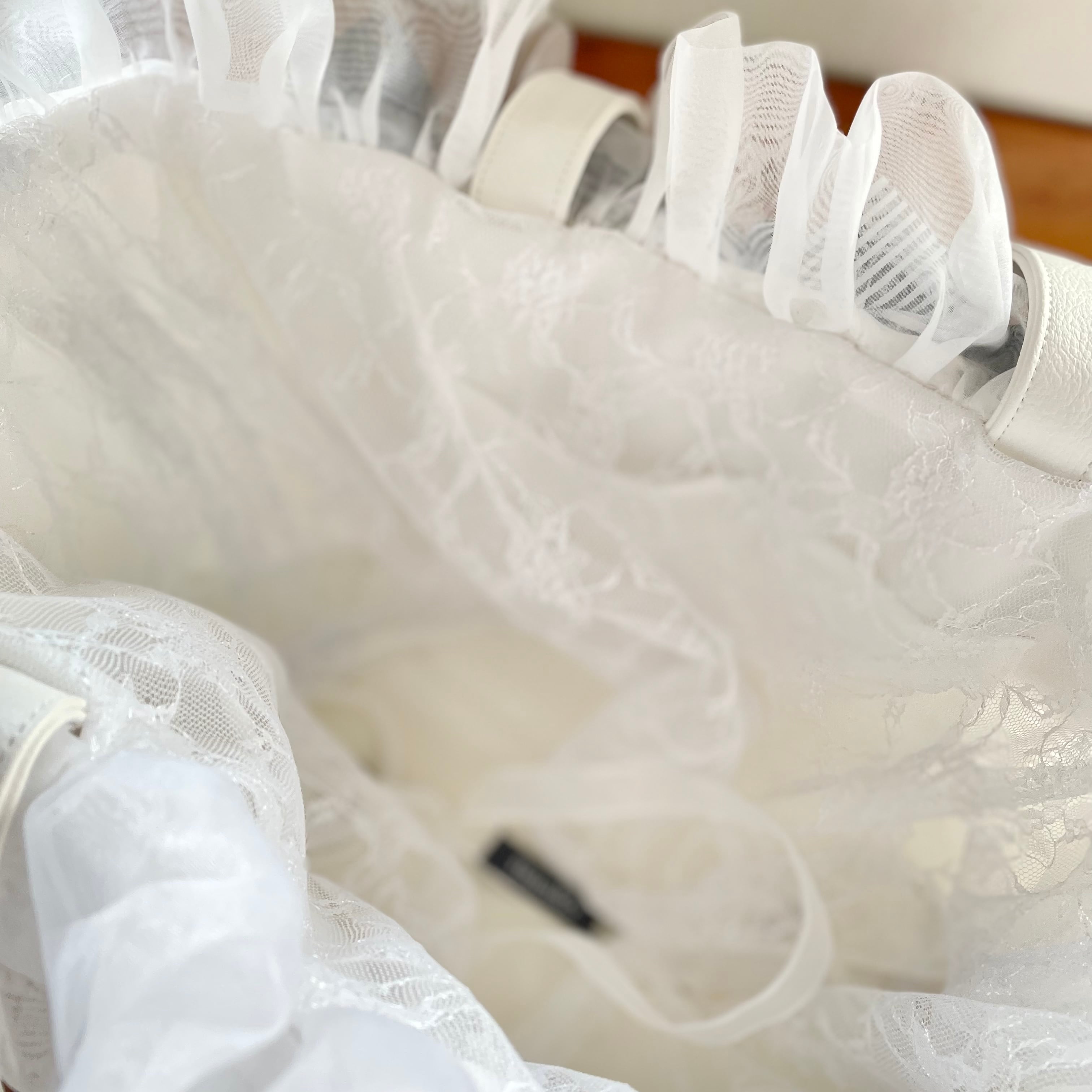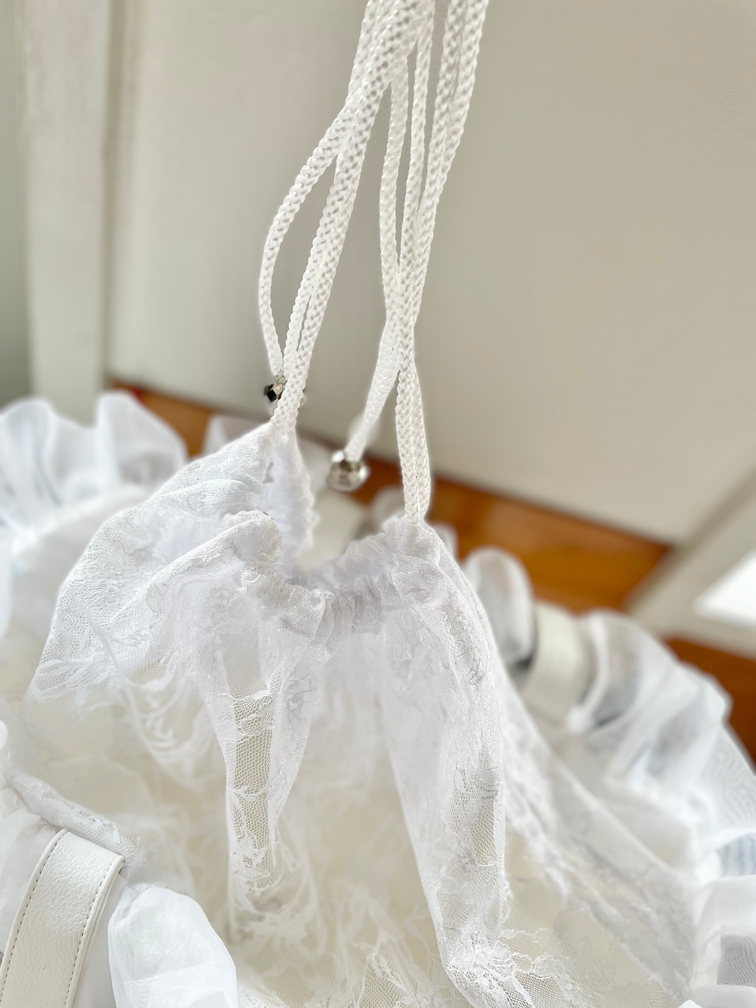 ・持ち手 合皮 ホワイト、長さ63cm(肩から掛ける長さ)