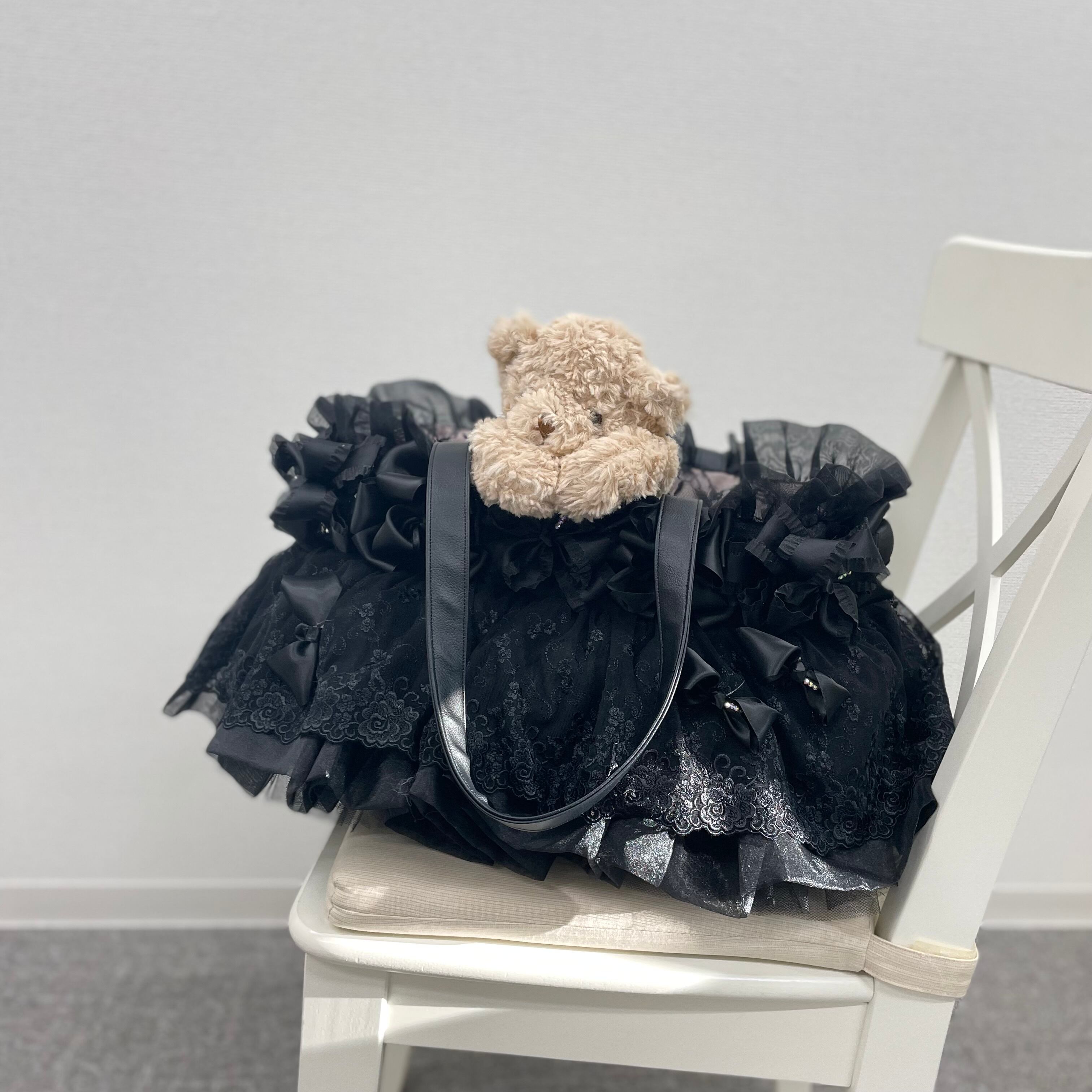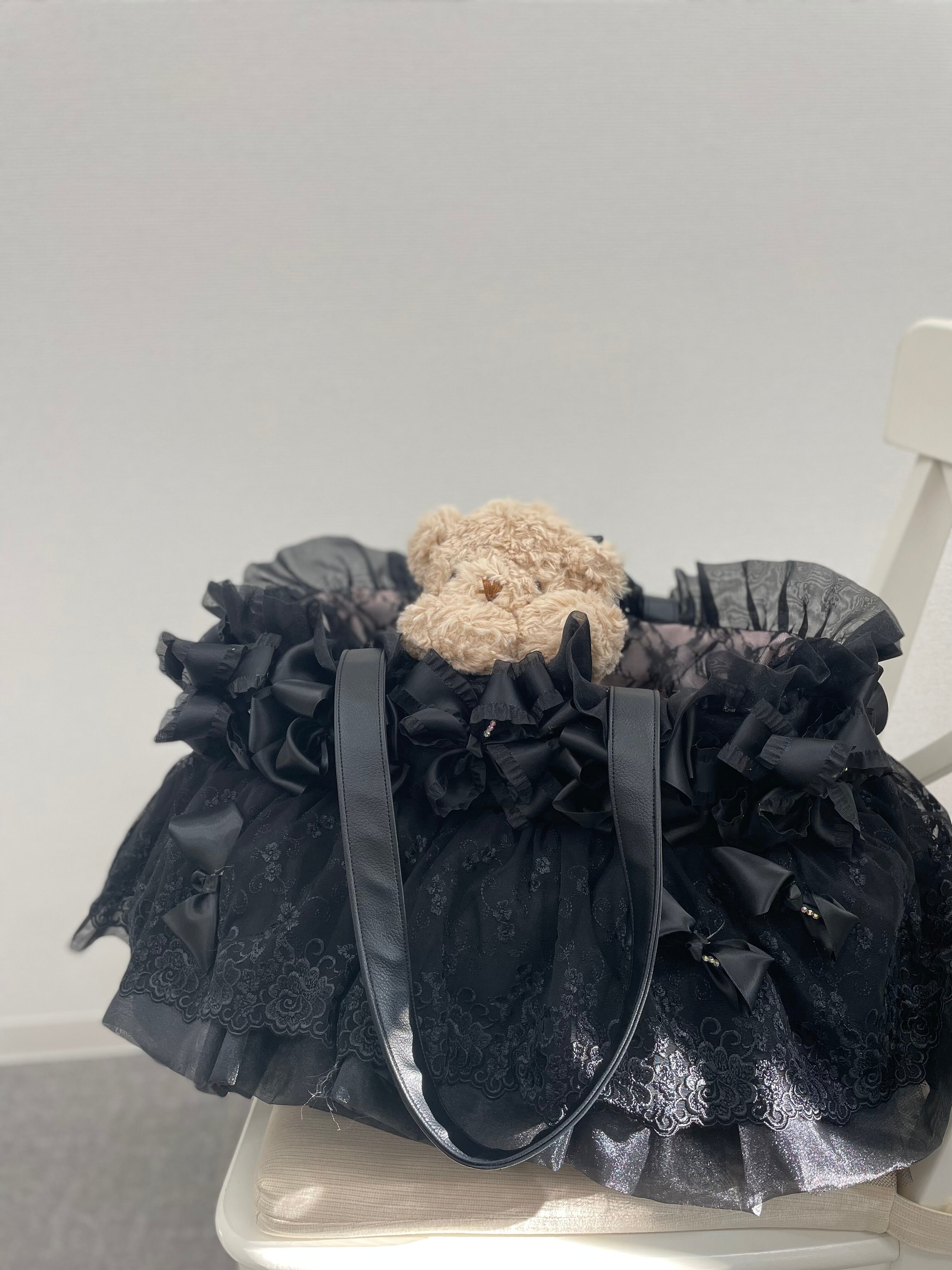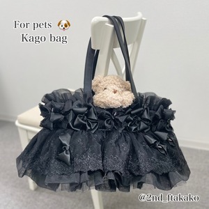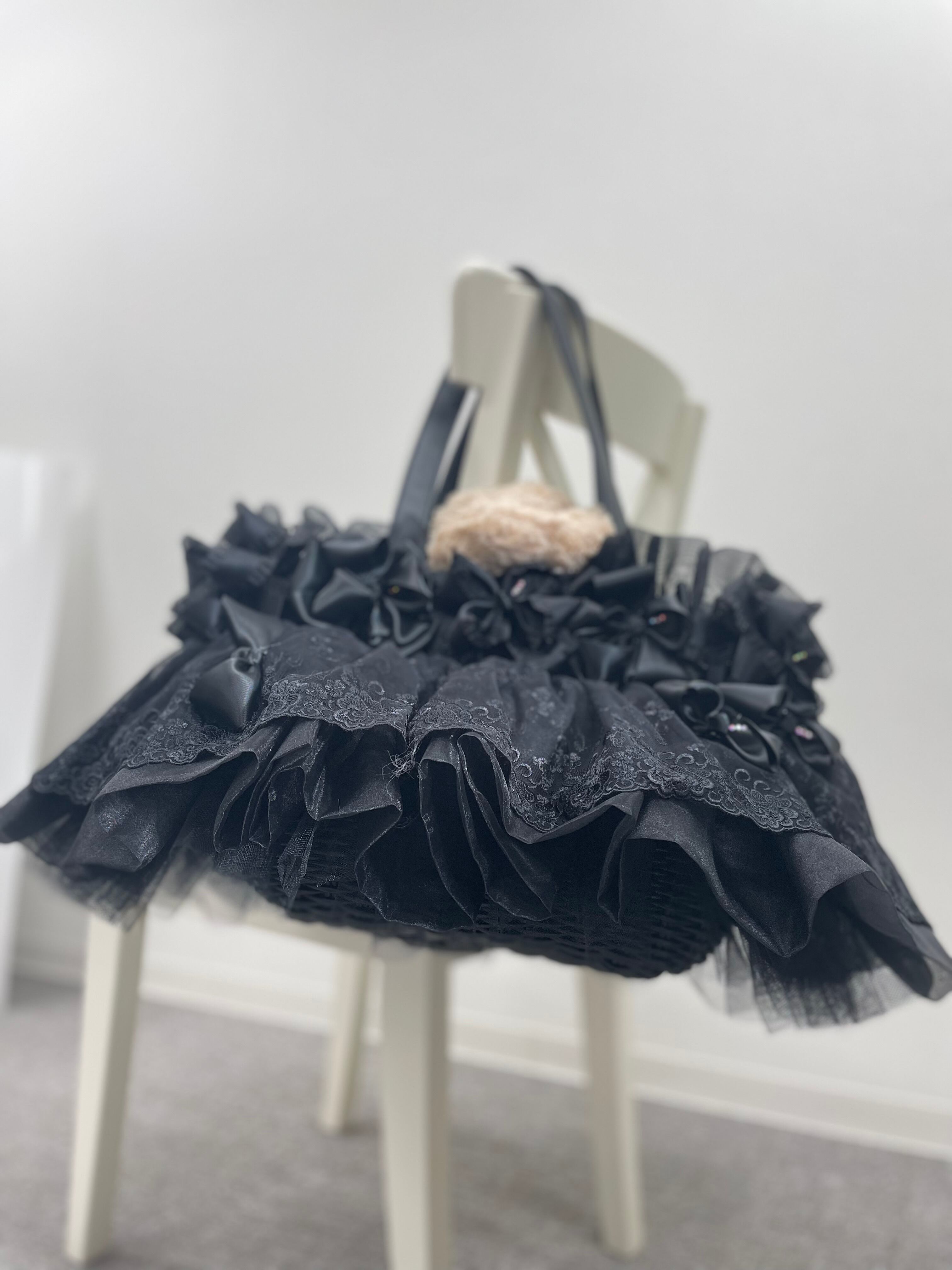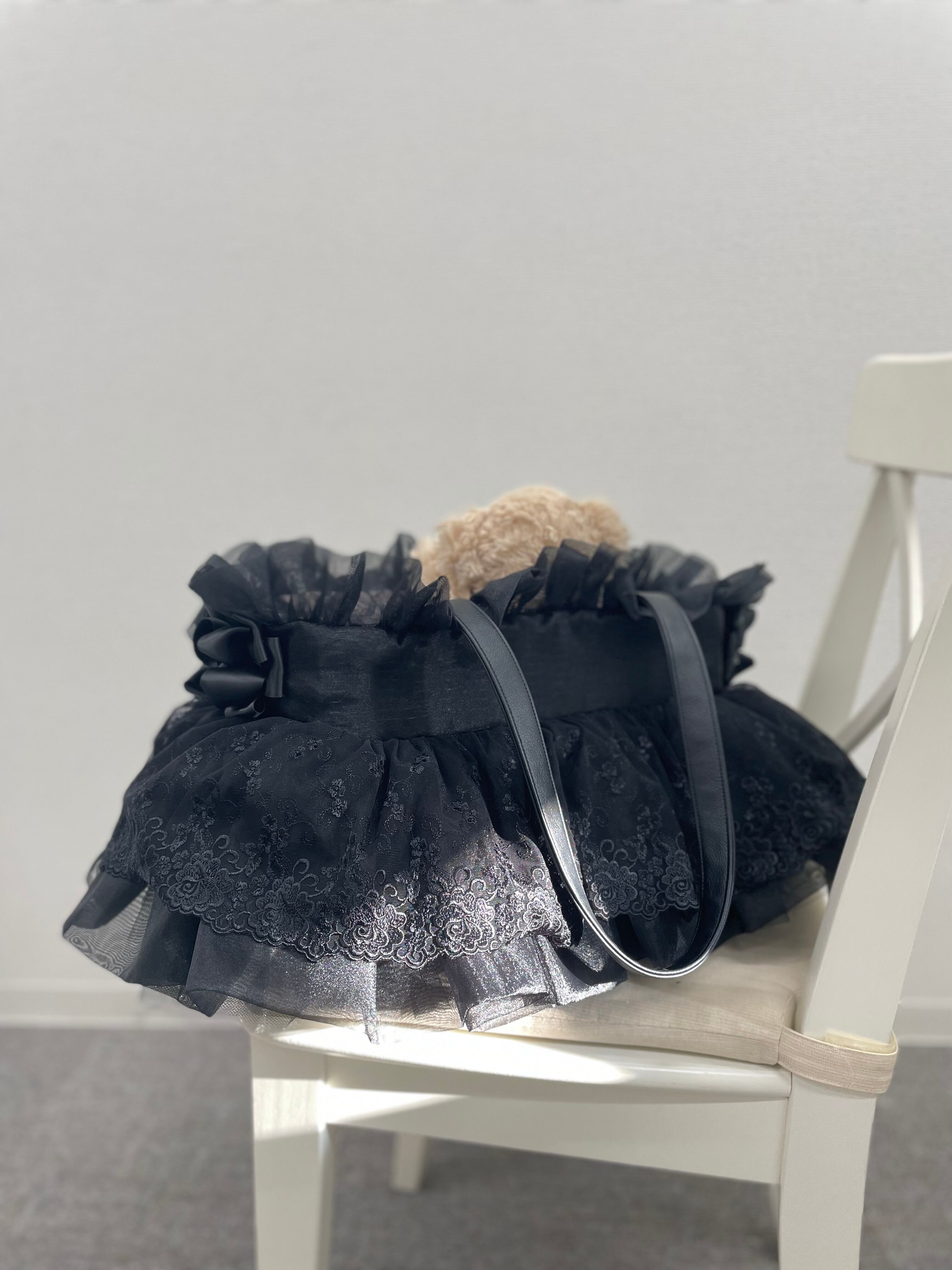 2キロまでサイズ 夏カゴキャリーバッグ "レースドレス" ペット用バッグ/ ブラック/ペット用バッグ/